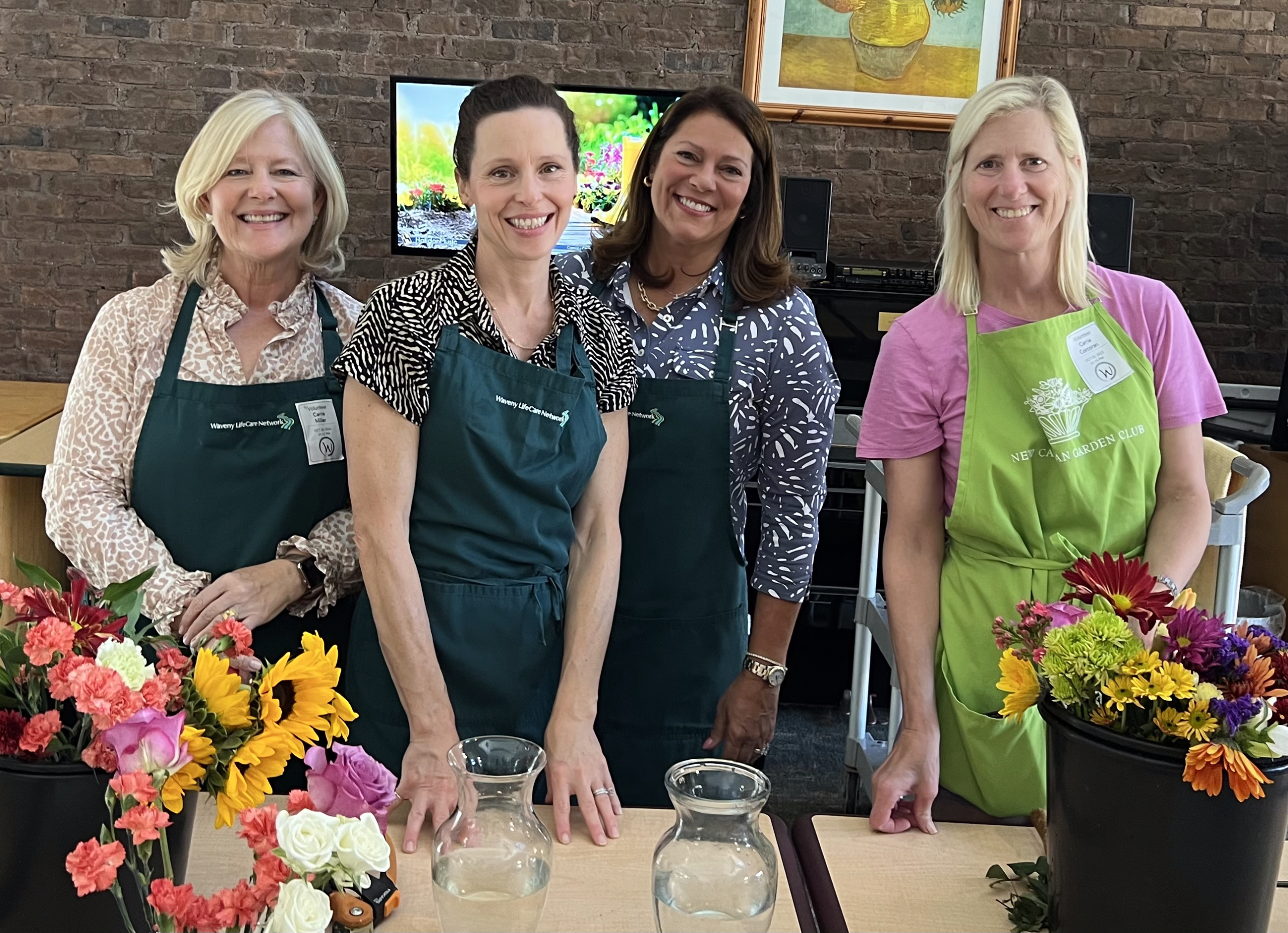 Today, Horticultural Therapy at Waveny Care Center is operated entirely by NCGC volunteers who meet eight times a year to work with two groups of memory care residents arranging flowers for the dining room and creating plant-oriented projects for their rooms. Many of the Waveny residents have gardening and flower arranging experience which add meaning and joy to them but also to our sessions.